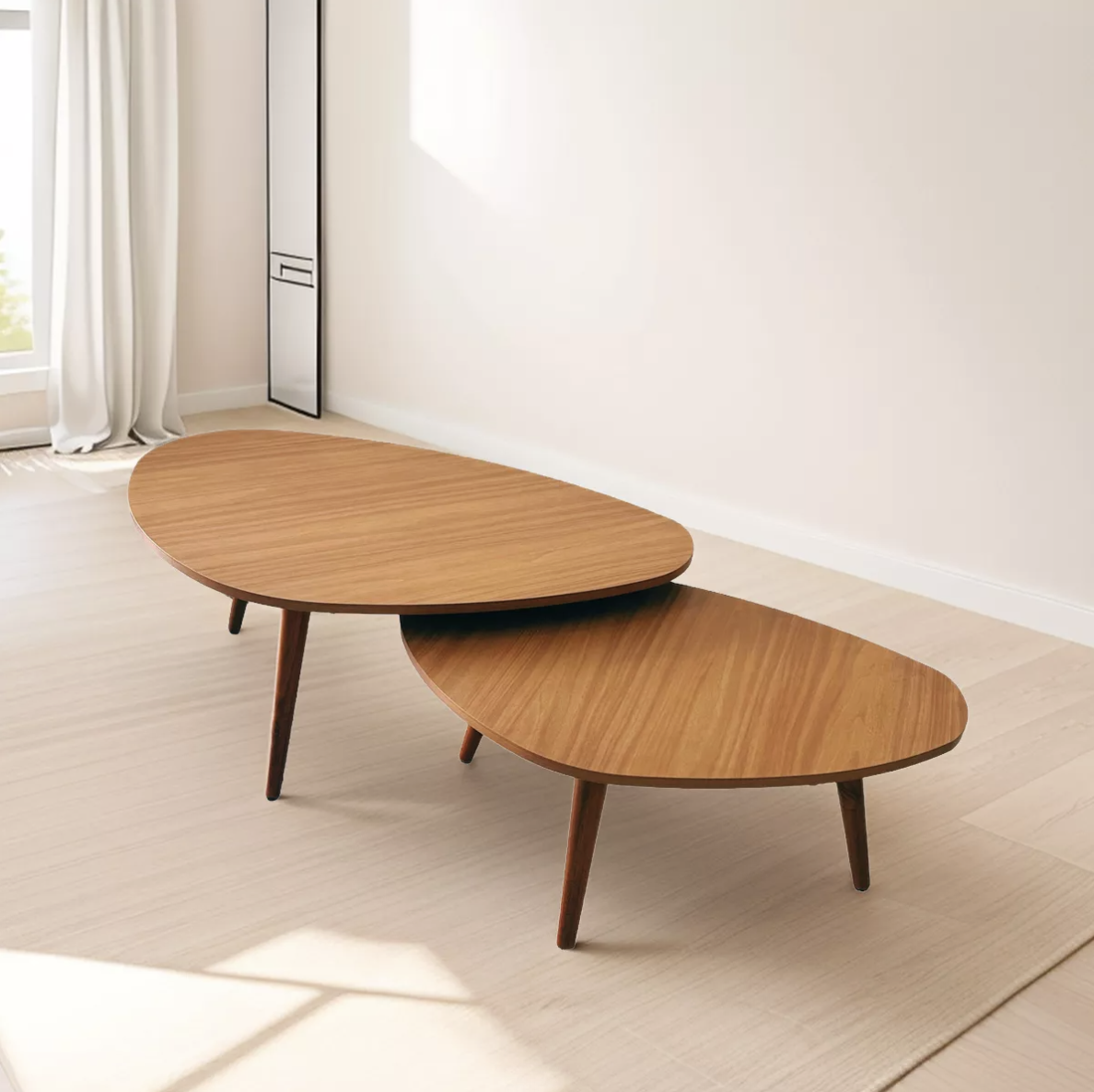 Kit Duas Mesas De Centro Sala De Estar Casa Madeira Design Orgânico- Mel
