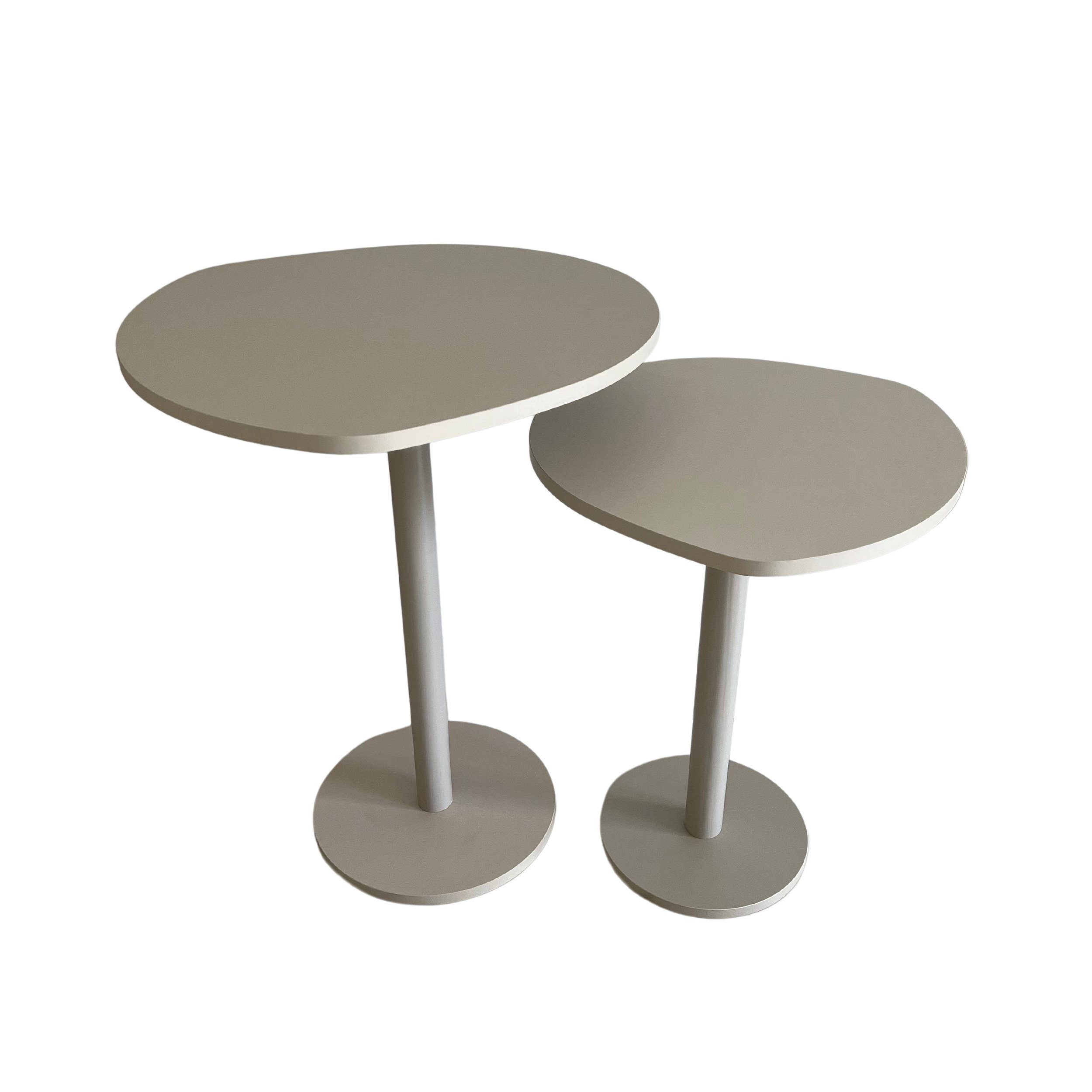 Kit Duas Mesas Centro/Lateral Orgânica Sofá Ou Cama Apoio De Objetos Madeira Off White 31 / 41 Cm